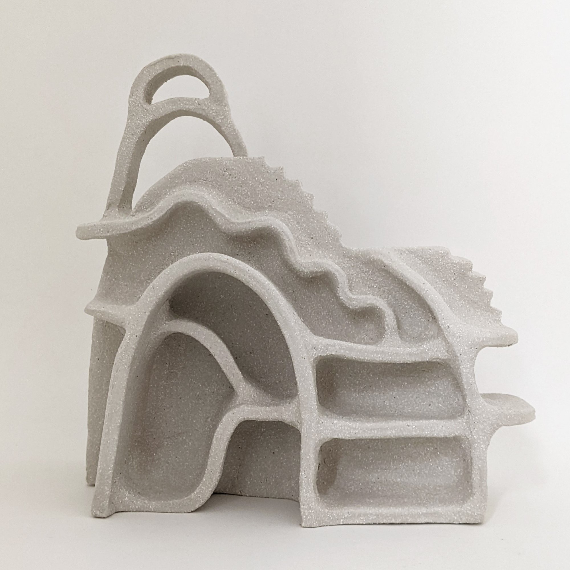 This series of sculptures titled ‘sandcastle sanctuary’ were formed straight from the mind, conscious and subconscious, through to the hands and towards the raw clay. Rather than drawing with a pen and paper before forming each sculpture, I intuitively sketched with the clay immediately in front of me while asking myself endless questions: What would a structure look like that seems to be formed by the tides, the elements and many ancient cultures manipulating its image over time? What does a space look like that is both enclosed yet open to nature? To build a sandcastle with clay that is exciting and confusing, a place to get lost in and forget about time? These were the questions I asked myself, then aimed to answer through forming my own architectural sanctuaries, places in my mind now experienced through sculpture.